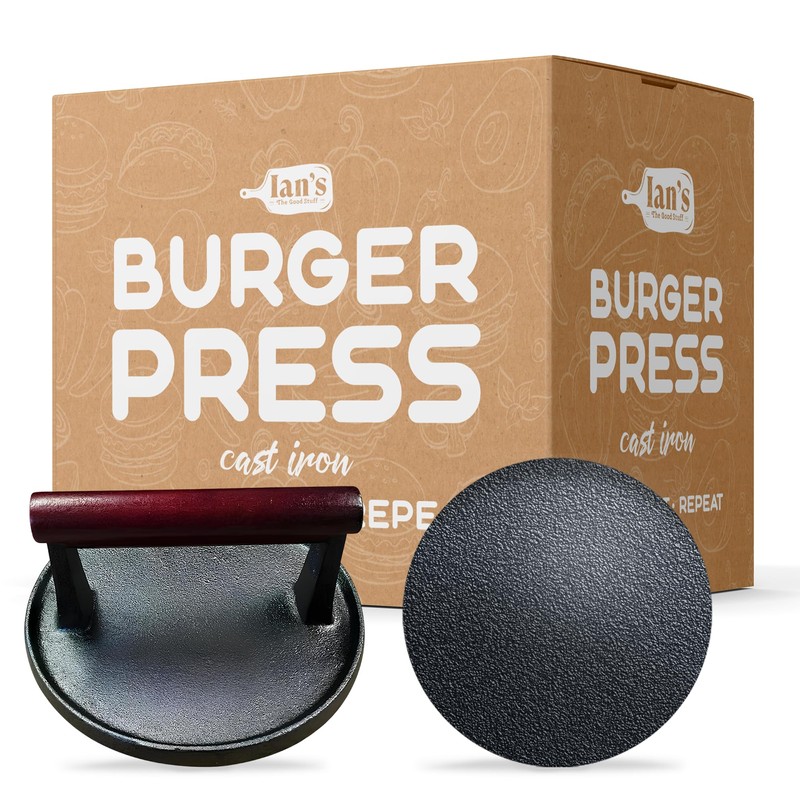 IAN's Smash Burger Press 4 Inch, Cast Iron Hamburger Press Heavy Duty - Burger Smasher Griddle Press, Meat Press