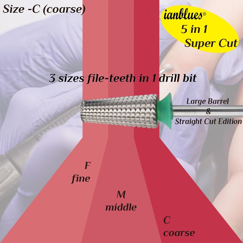 ianblues Nail Drill 5 in 1 Multifunction Upgrade Edition -Super Cut Series Efile for Manicure Drill Machine, Hard Nail Gels Remove Ability (Large Barrel Straight Cut, Coarse -C)