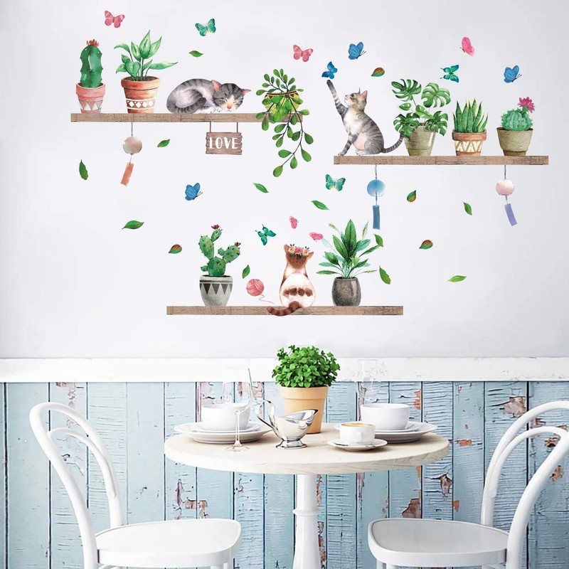 - Temperate Plant Cat Theme Decoration:The Animals and Plant wall stickers include adorable cats decal, pot plants decal, butterfly decal and more, 48 pieces pattern in total , when your kids or friends sees it will be attracted.Decorate the wall and let them more happiness.