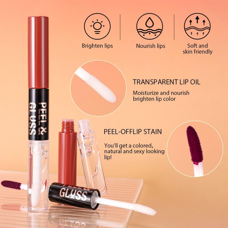 - 【2-in-1 Dual-Ended Lip Magic】Experience the ultimate lip combo with our dual-ended lip tint and oil duo! One end features a long-lasting peel-off lip stain for vibrant, transfer-proof color, while the other delivers a hydrating lip oil that locks in moisture and shine. A beauty essential for your on-the-go glam routine.