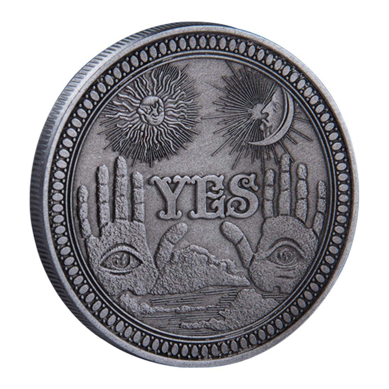 - Unique Design: Eye of god in the hand and relief letter "YES" on the front side, a demon with sickles and relief letter "NO" on the other side.