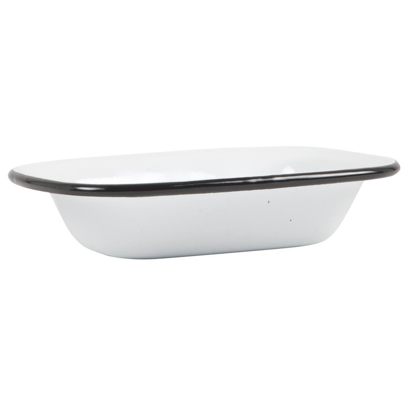White enamel soap dish with a black border in a nostalgic look - for standing. We also offer a toothbrush beaker.