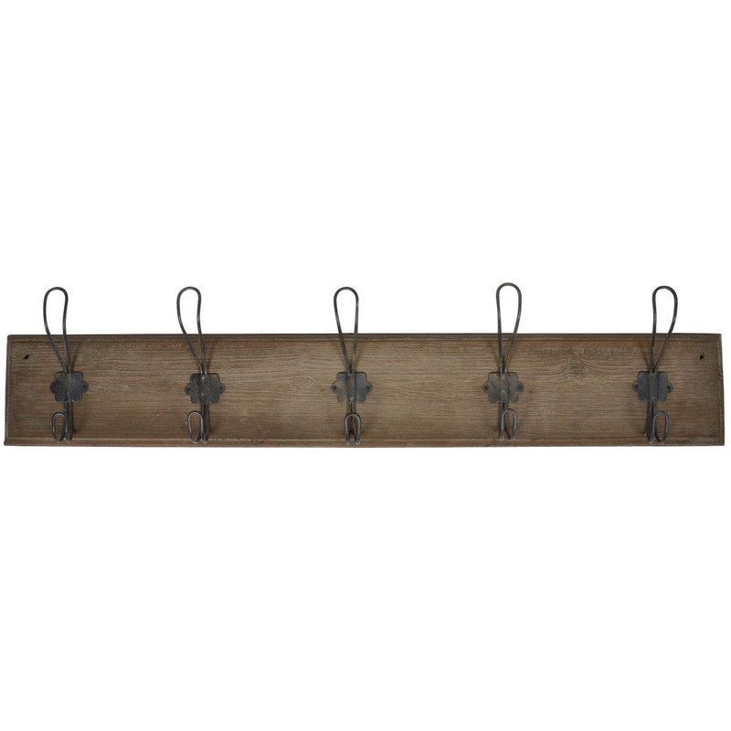 Dimensions: height: 12 cm / hook: 16 cm length: 75 cm width: 2 cm material: wood, metal colour: brown, amber, black net weight: 0.65 kg. Product number: IL00739 / 5264-14 Ideal as a coat rack. It can be a great addition to your bathroom as well as your utility room.