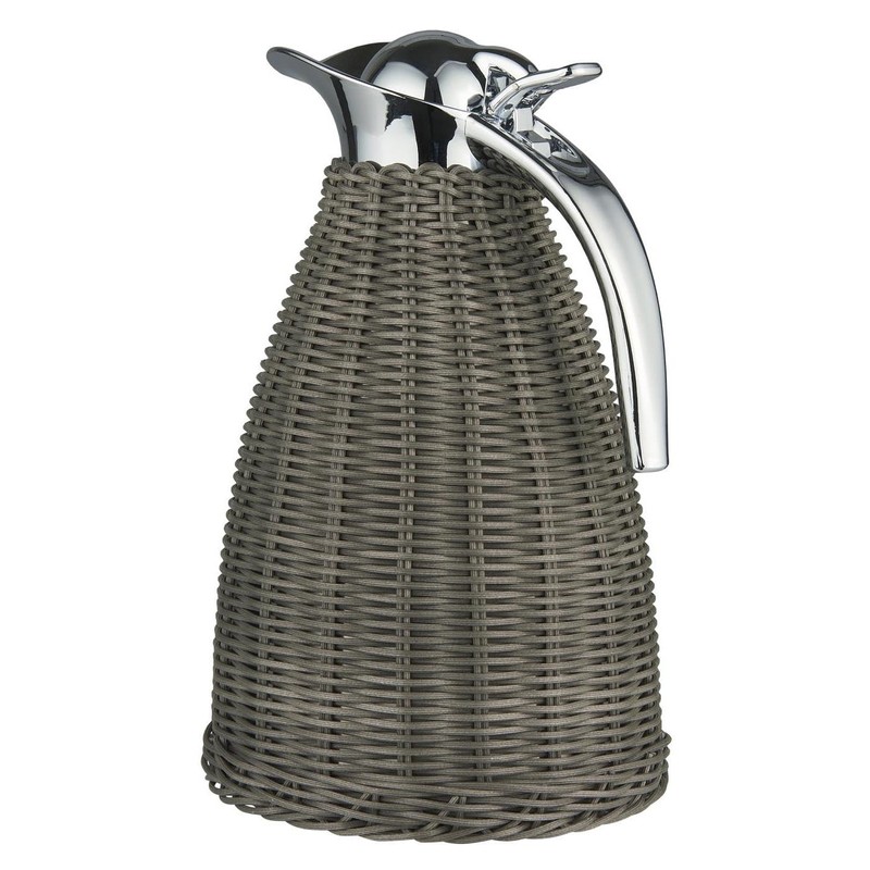 Thermos flask grey poly rattan wicker.