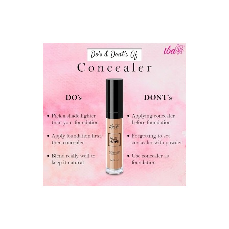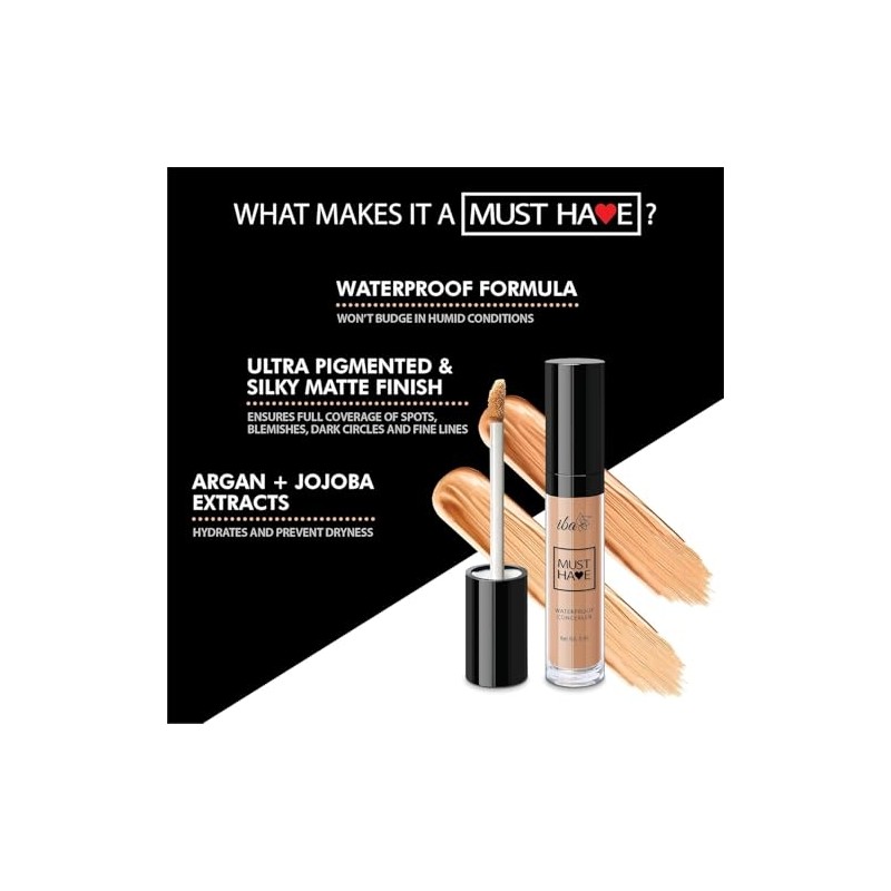 Iba Must Have Waterproof Concealer Matte Finish, Full Coverage & Long Lasting, Oil Free & Lightweight, Easily Blendable Concealer For Face Makeup, 100% Natural & Vegan Makeup - Medium, 8ml
