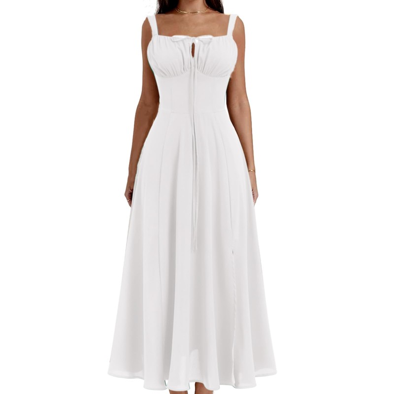 IBAKOM IBAKOM Women's Summer Dress Spaghetti Strap Dress Spring Boho Dress Front Slit Swing Midi Sundress Party Holiday Beach Dress White L