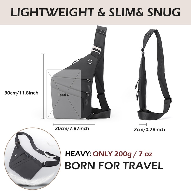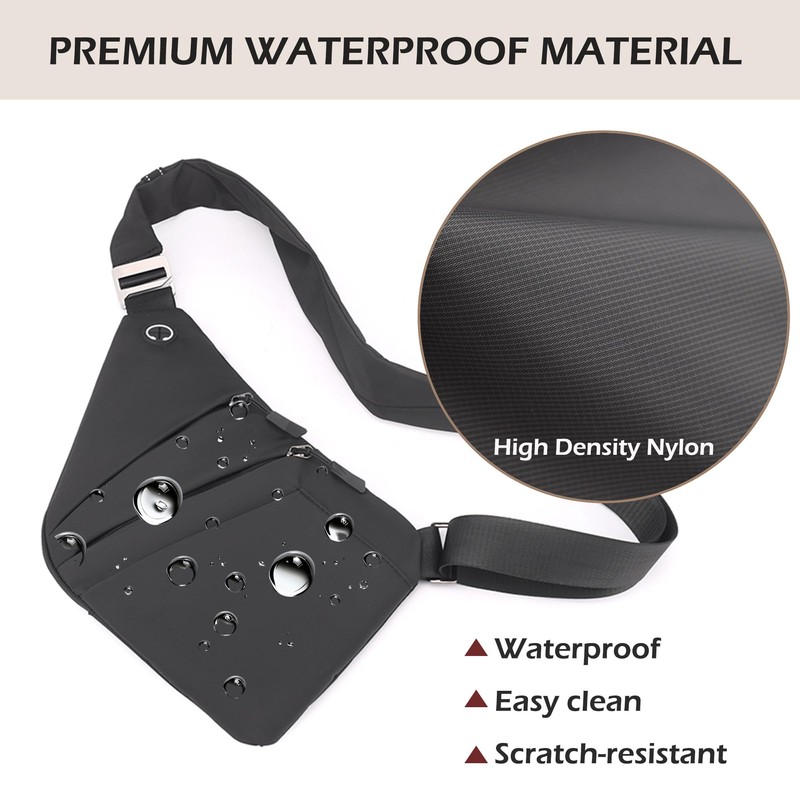 Ibalulu Gipfelfreund Anti-Theft Bag, Anti-Theft Shoulder Bag with Multiple Pockets, Shoulder Bag, Water Resistant Chest Bag, Security Bag, Travel, Anti-Theft for Men and Women, Left shoulder black