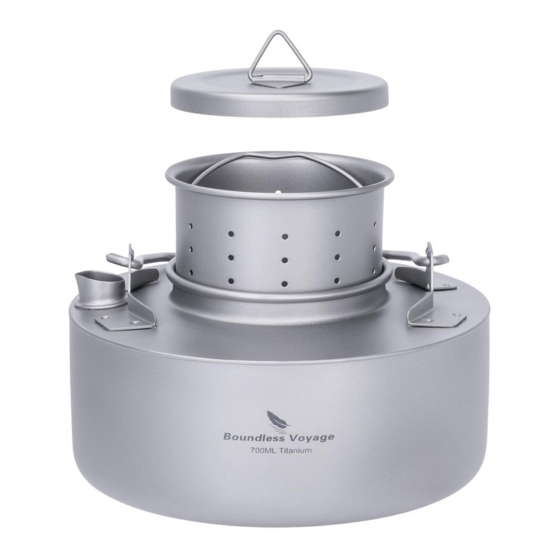 5. With Foldable Handle: Foldable titanium handle for easy storage, the kettle won't take up too much space in the backpack. This teapot is ultralight and portable, it can fit well in your backpack or suitcase, it's easy to carry and store, very good for outdoor activities.