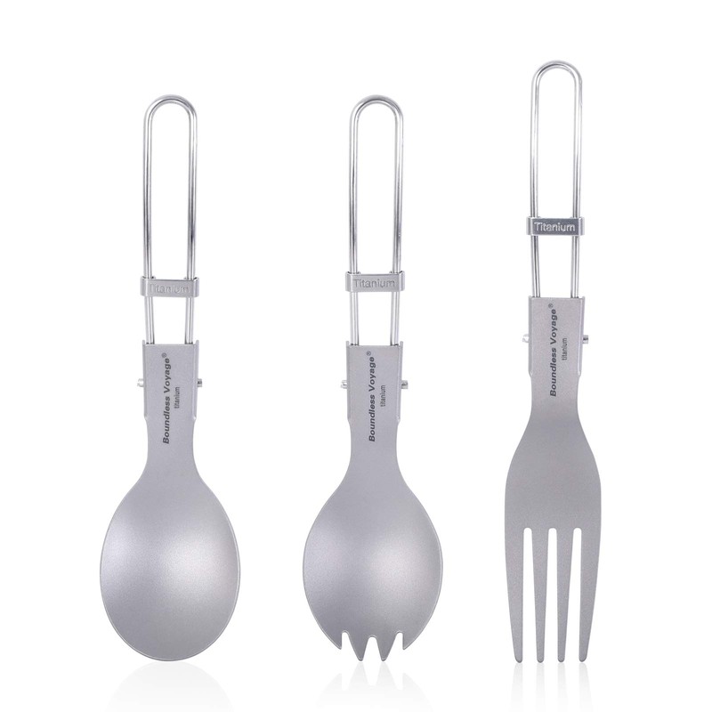 iBasingo Ti1026T Camping Cutlery Set Titanium Folding Spoon Spork Fork Outdoo...