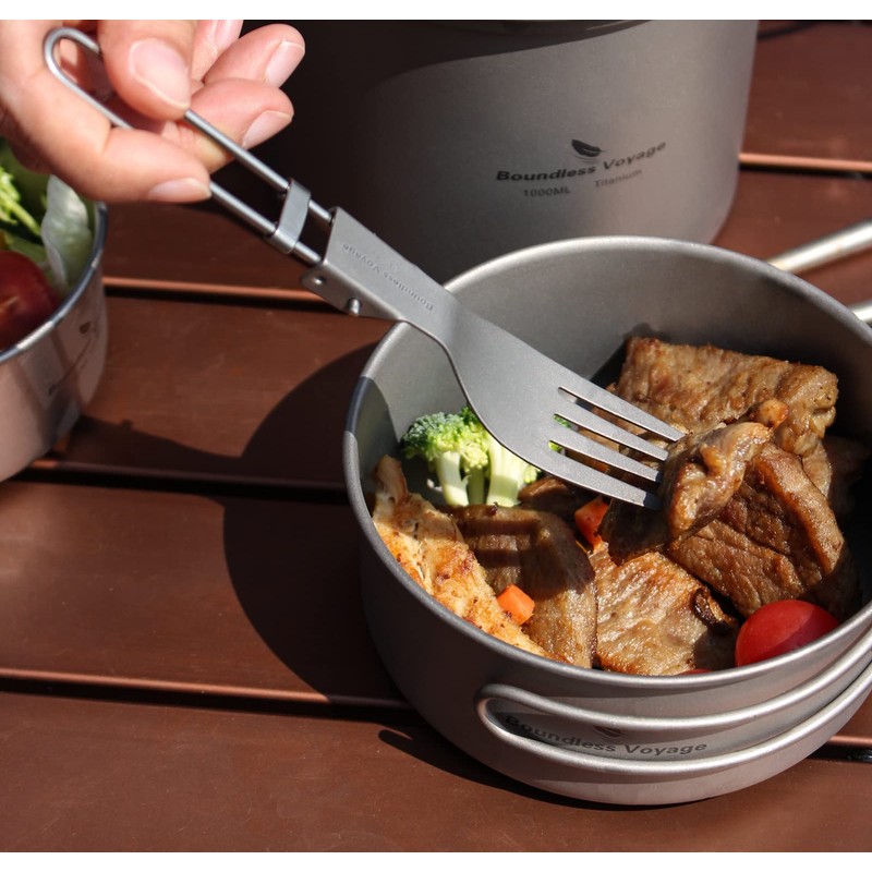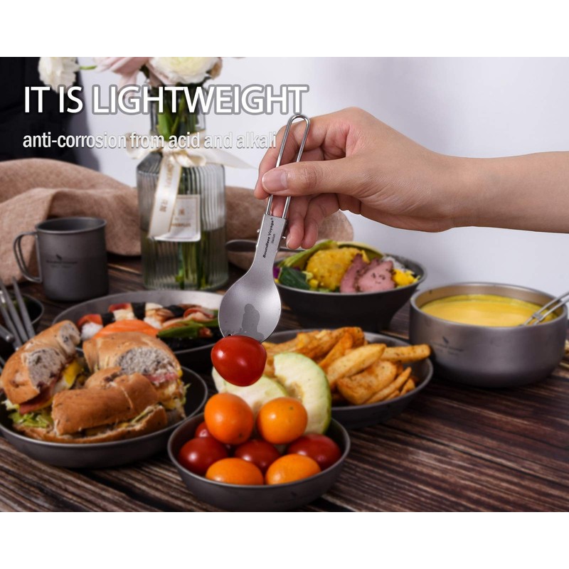 iBasingo Ti1026T Camping Cutlery Set Titanium Folding Spoon Spork Fork Outdoor Travel Portable Tableware Small Lightweight Flatware Business Trip Picnic Hiking Fishing Tableware with Bag