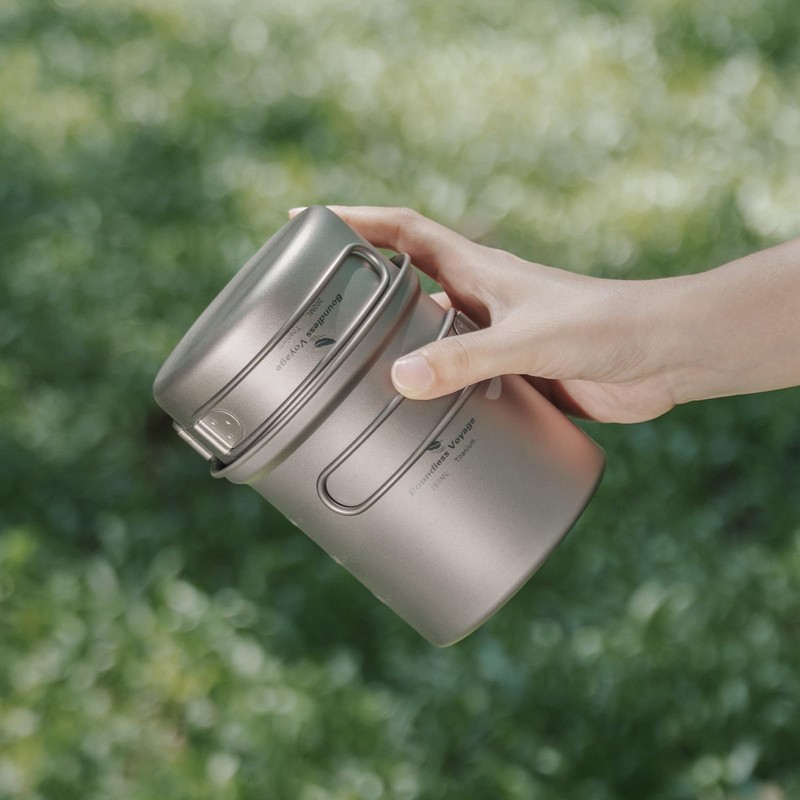 - ● The Ti15120A 2900ml pot is suitable for 2-4 people, the Ti15120B 1300ml pot is suitable for 1-2 people. The Ti15120B 1300ml pot can be placed in the Ti15120A 2900ml pot. Perfect for travel, camping and everyday use, these cookware sets are easy to use. It is not only good for camping, but also has a drawstring bag which makes it easy to carry when travelling, in the office or in the car.