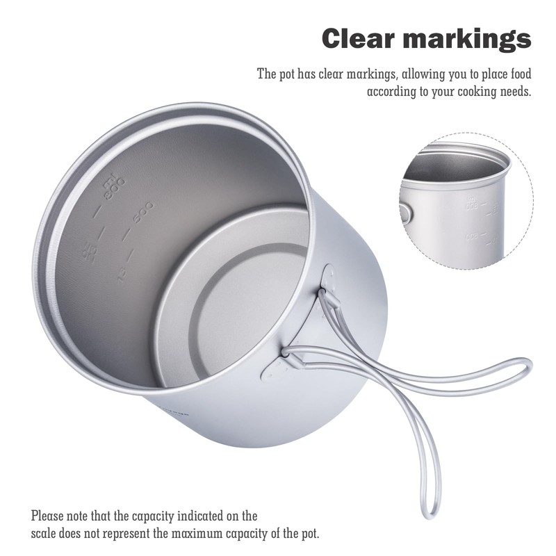 - ● The handles can be folded to a smaller size, ultralight and portable, save space when you are outdoors. The small Ti2037C pot set can be placed in the large Ti2038C pot set, which saves space and is easy to carry.