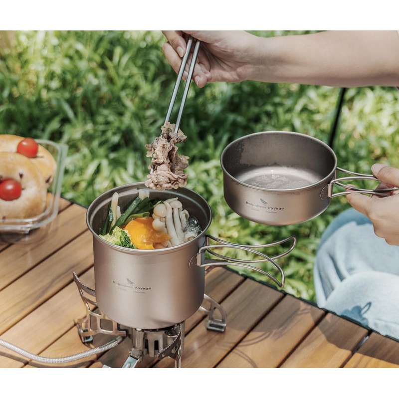 Camping Cookware Outdoor Titanium Pot Pan Set