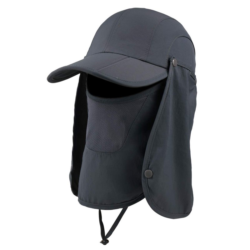 iBasingo アウトドア UVカット 帽子 3Way 360度UVカット 日除け 折りたたみ可能 紫外線対策 花粉対策 取り外し可能 フェイスカバー スポーツ 登山 農作業 ガーデニング キャップ ランニング 釣り メンズレディース兼用 ダークグレー BVH19