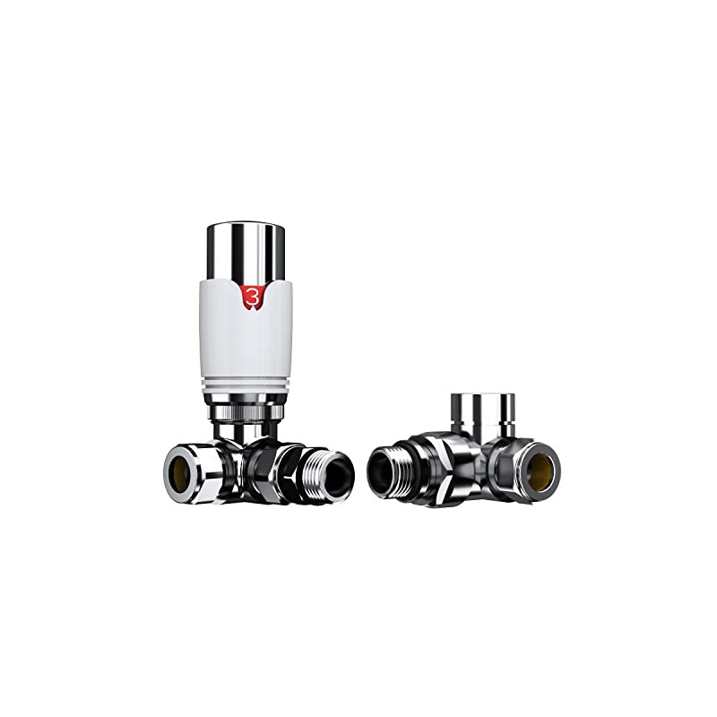 iBathUK Pro Thermostatic Corner Radiator Valve 1/2" (TRV) and Lockshield Valve, Central Heating, Tower Rail Valve- White/Chrome