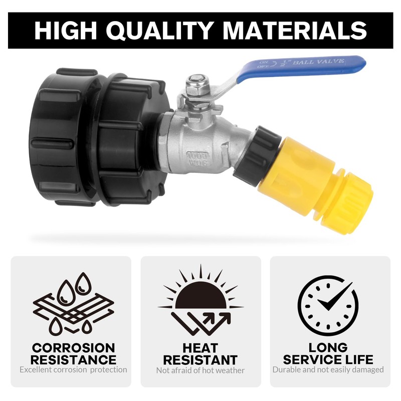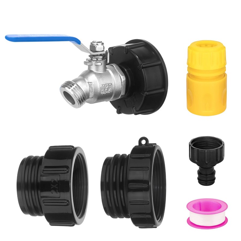 - The Set Includes: The set is equipped with a stainless steel 1/2"NPT to 3/4"GHT garden hose faucet and three different sizes of threaded adapters, which can accommodate most standard American IBC containers, ton drums, and other plastic drums. It is also equipped with a garden hose quick connector, providing you with a better garden experience.