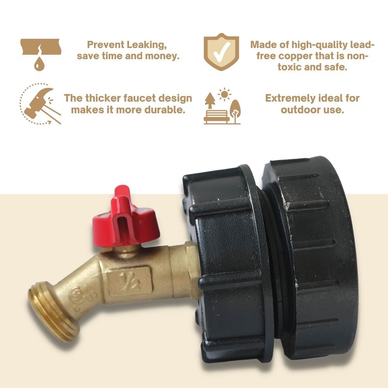 - 【IBC Tote Adapter Kit】With your purchase, you'll receive everything you need for a seamless connection – the 2.44'' IBC Tote Tank Adapter, 2" Coarse Thread Adapter, 1/2" × 3/4" GHT Valve Faucet Garden Hose Connector, and a silicone gasket. T