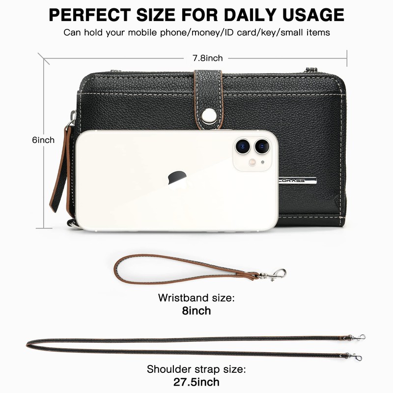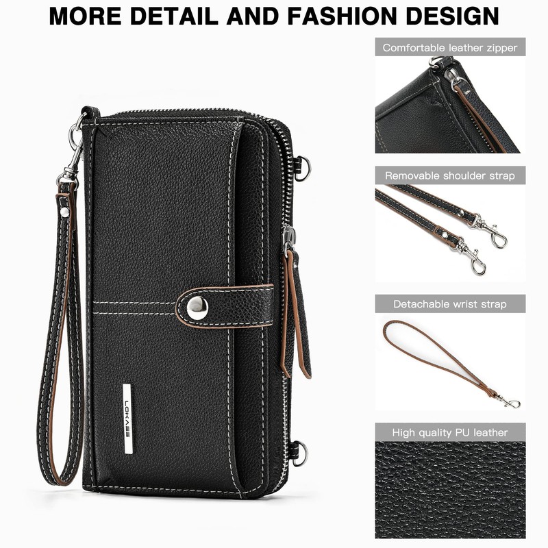 - VERSATILE & PRACTICAL This womens wallet comes with a detachable wrist strap and a detachable shoulder strap, allowing you to carry it in different ways. It can be worn as a wrist bag or as a crossbody purse to keep your hands free. Perfect for today's busy woman.