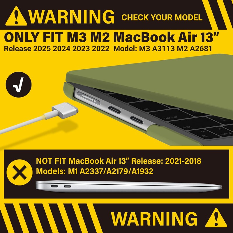 - Check Your Model: This case is specifically designed for the 2025 2024 2023 2022 MacBook Air 13 inch with Touch ID, latest Model: M4 A3240 / M3 A3113 / M2 A2681.
