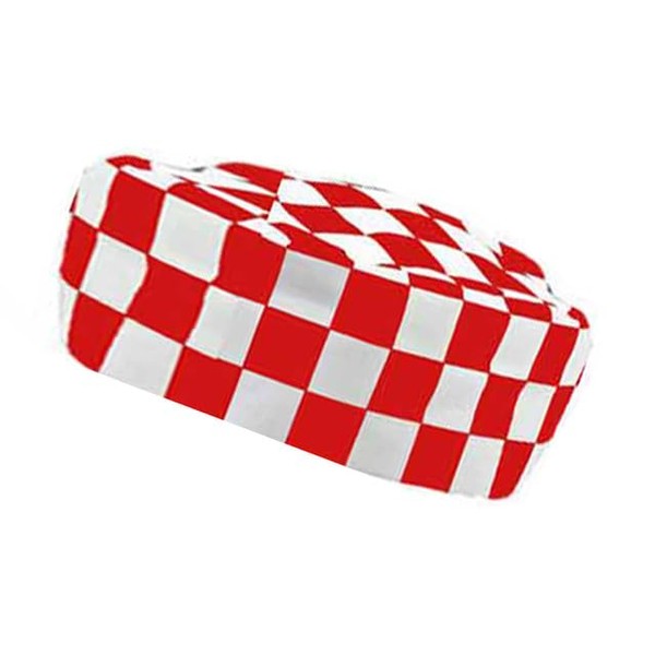 IBEX Polycotton Plain Skull Caps Professional Catering Hat for Chefs, Cooks, Bakers, Mens and Womens, Red White Check (Pack of 5)