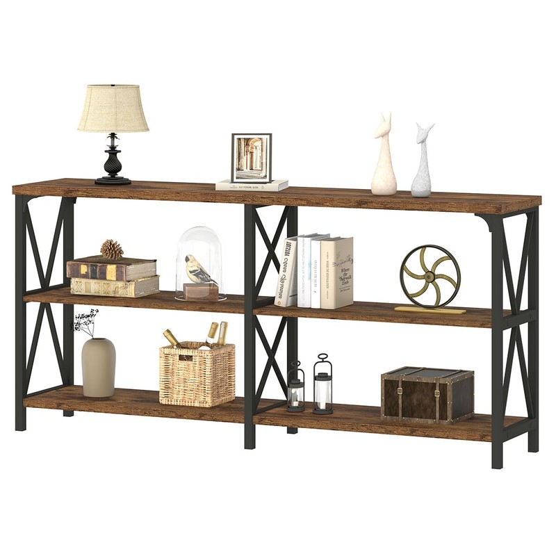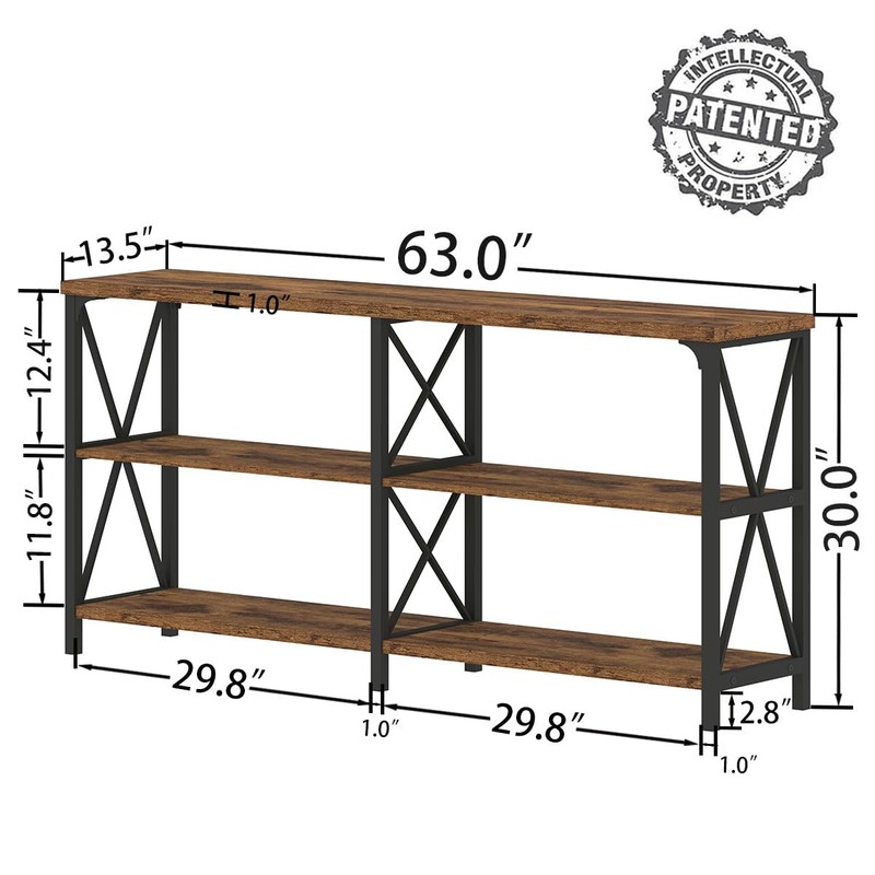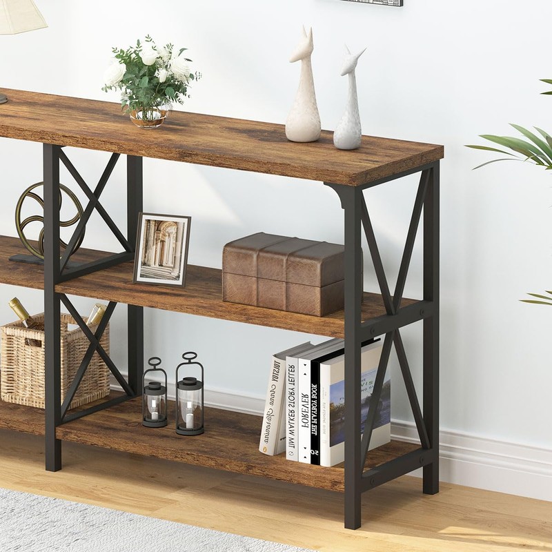 - 【Multifunctional and Stylish】: Whether you choose to use this in your living room as a entryway table, spare bedroom as a sofa table, study room as a 3 tier bookshelf or dining room as a buffet, this rustic brown console table with storage will make a stylish and practical addition to your home.