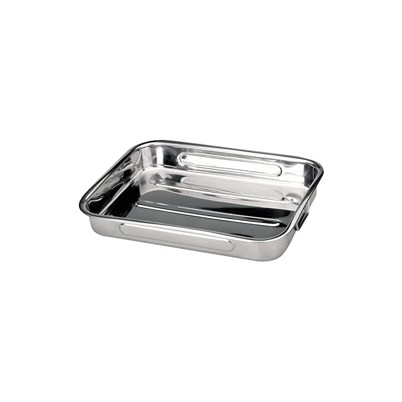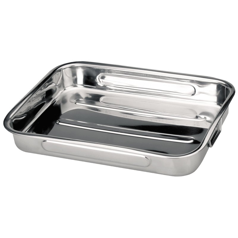 - 31 x 24 cm; roasting pan with folding handles; stainless steel