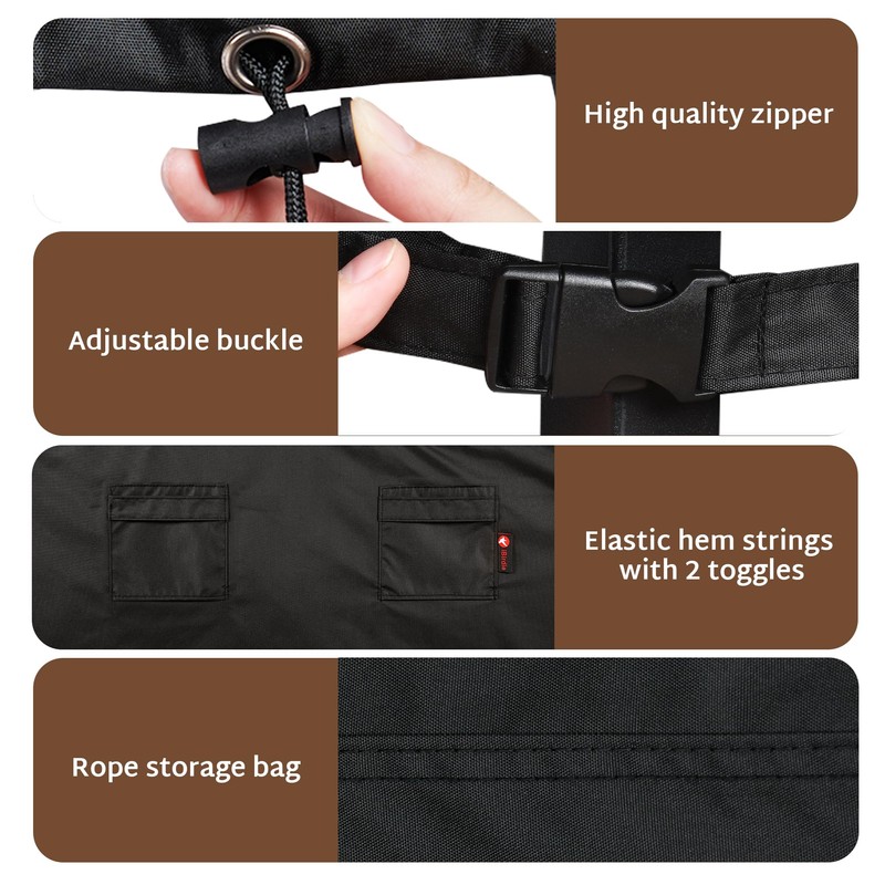 - Adjustable Design: The windproof outdoor table cover comes with 4 elastic hem drawstrings and 4 adjustable click-close straps, so you don't have to worry about blowing away even in windy conditions