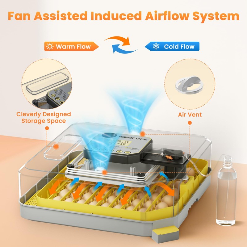 - 【Independent Water Adding Design】 No need to open the incubator lid for water top-up, the external water inlet allows easy water replenishment without disrupting the incubator's internal environment, without worrying about temperature or humidity fluctuation. The 360° circulating air flow system provides humidity inside, allowing the developing embryo to feel the mother-like breath.