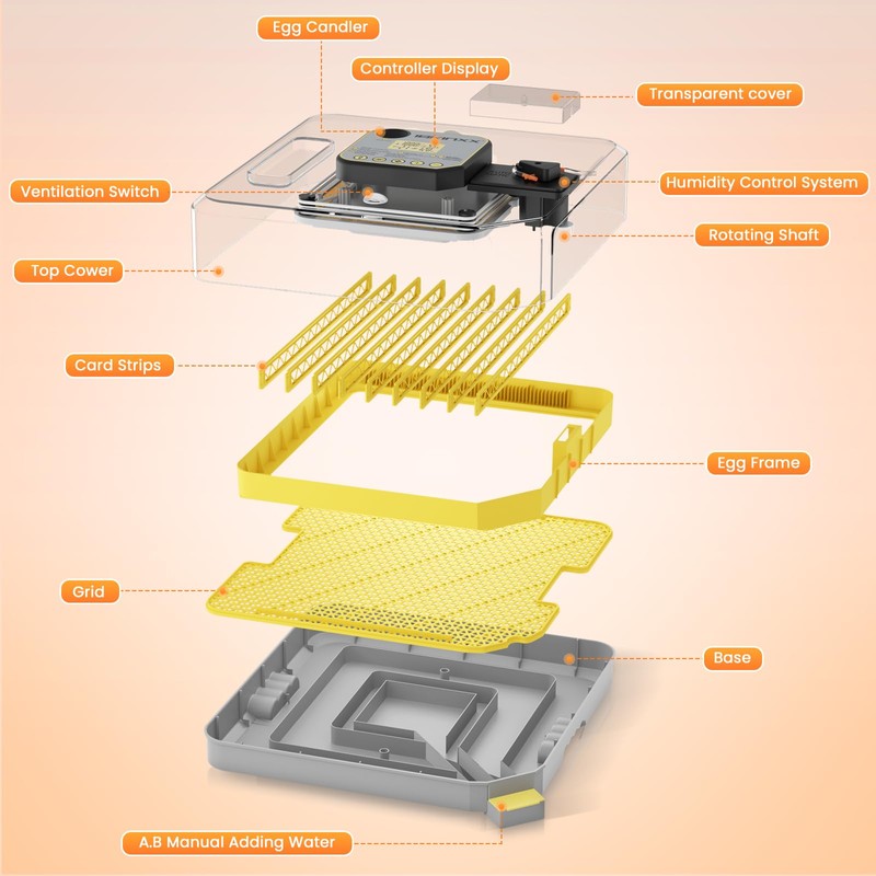 - 【Ultra-Clear Panoramic View】 This incubator adopts a 360 ° visual design, making it convenient to explore the birth of life. Configure a built-in egg candler, allowing you to observe embryo development at any time. Enjoy a full panoramic view of the hatching process with our transparent incubator cover. Even children can operate it with ease. Egg incubation is a breeze!
