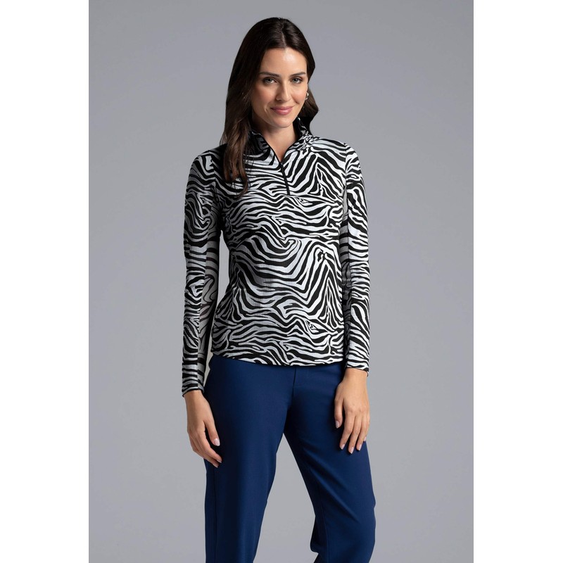 IBKUL Athleisure Wear Sun Protective UPF 50+ Icefil Cooling Tech Cecilia Print Long Sleeve Mock Neck Top – 10932 Navy/Peri Cecilia L