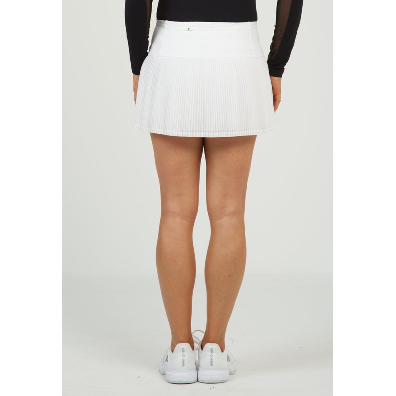 You'll appreciate all the thoughtful touches in our new pleated Power Mesh Skort. Side pockets on the shorts and a back zip pocket on the waistband hold all your necessities. The 13-inch length is perfect for tennis and comes in black, white, navy & hot pink, and like all IBKÜL skorts features UPF 50+ sun protection, moisture-wicking, anti-microbial fabric.