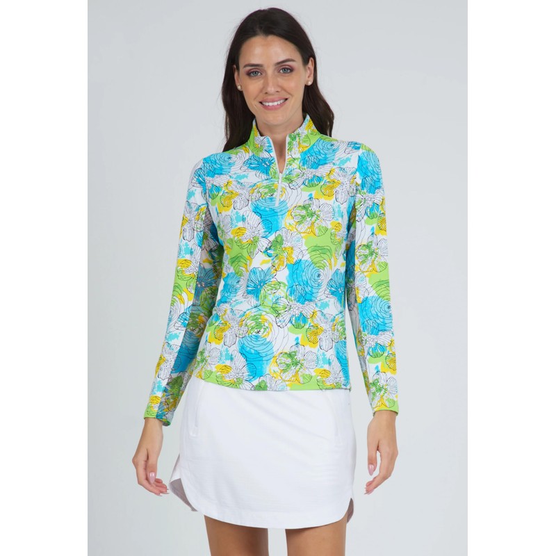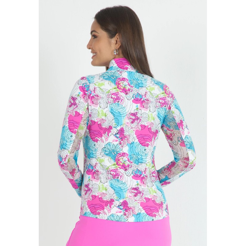 IBKUL Women’s Sun Protective UPF50+ Icefil Cooling Paddy Print Long Sleeve Mock Neck Top – 10757 Hot Pink Multi Paddy XS