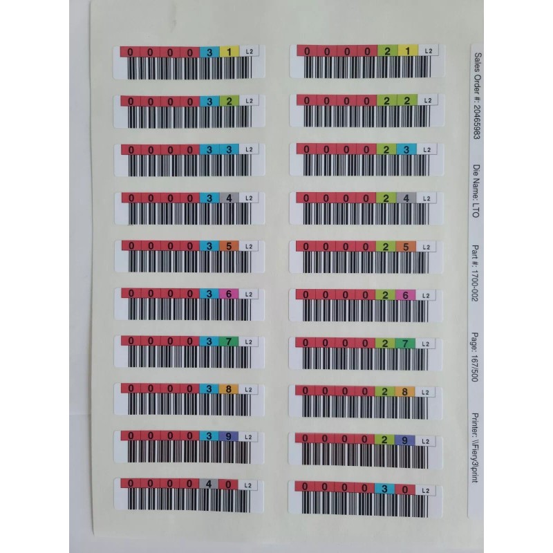 IBM LTO2 Tape Media Cartridge Barcode Labels - Sheet of 20 Printed Horizontal