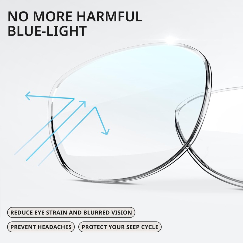 - COMFORT FOR DAILY USE: Crafted from durable TR90 material, our trendy bluelight glasses womens ensure long-lasting comfort. The high-transmittance lenses (98%) on the blue light blocking glasses help keep your eyes relaxed.
