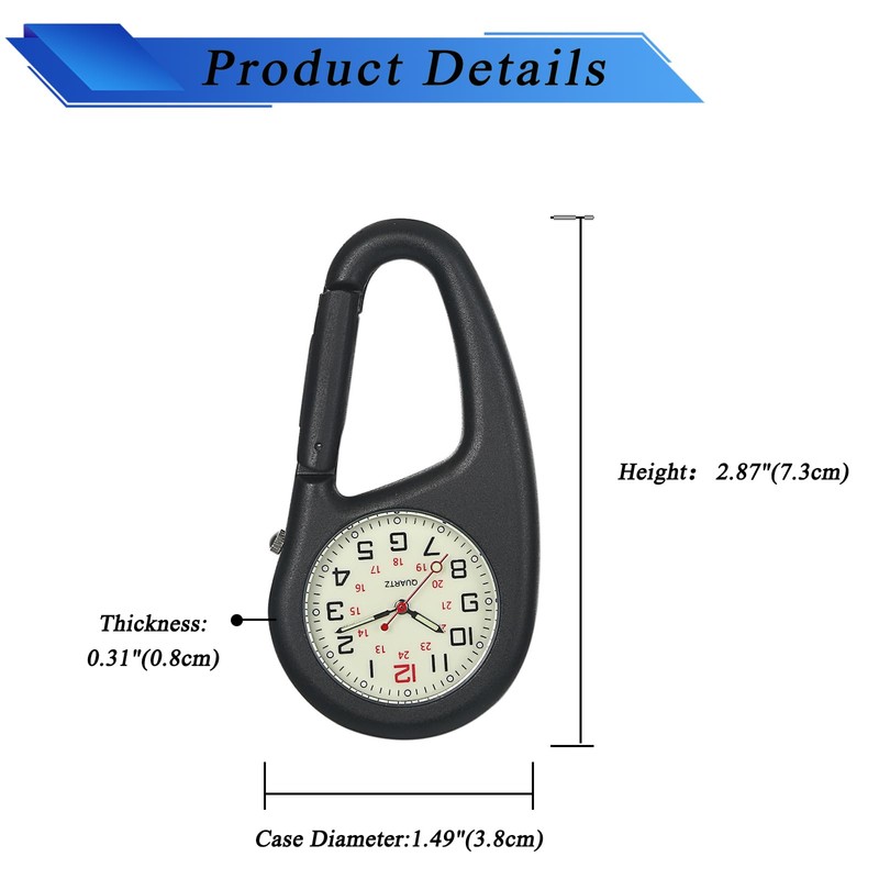 - Illuminate Your Adventures: Elevate your outdoor experiences with our luminous carabiner watch, a sleek and practical accessory that effortlessly clips onto your bag, belt, or attire. Designed to be visible even in low-light settings, it's your ideal companion for nighttime escapades or outdoor activities.