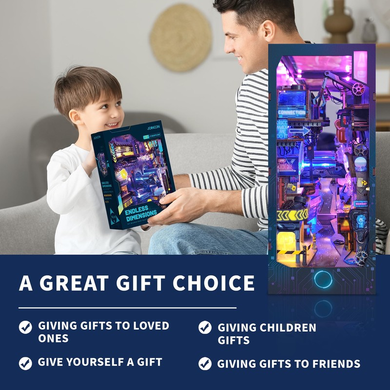 IBOHEYE Cyberpunk Book Nook with LED Light - 3D Puzzles for Adults, DIY Miniature House Kit, Exquisite Bookshelf Decor, Book Shelf Decor, Perfect, Dollhouse Book Nooks -(Endless Dimensions)