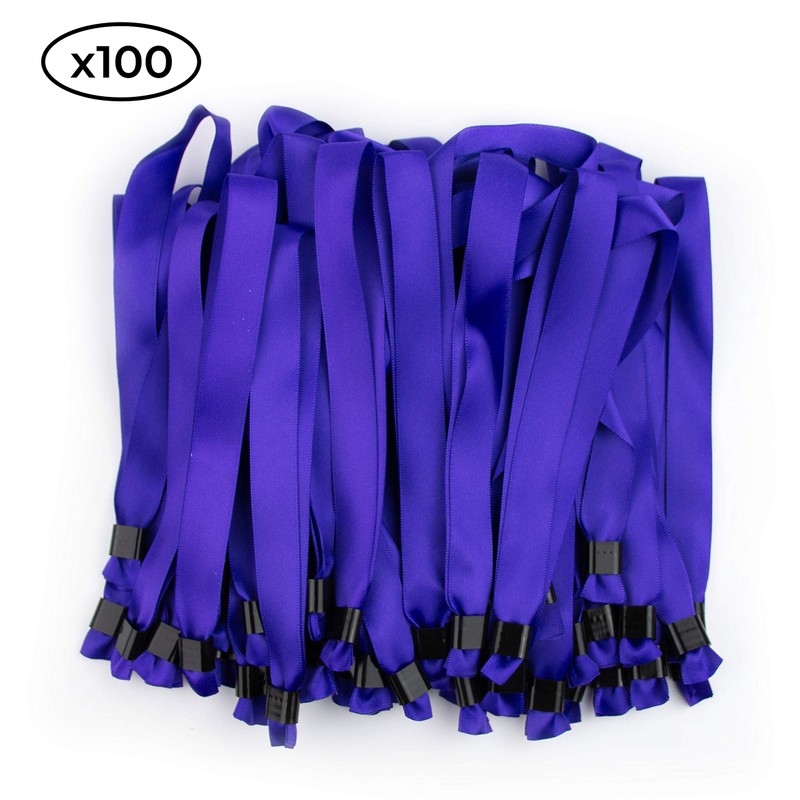 IBOO Extiff 100 Purple Fabric Bracelets for Events - Plastic Clasp to Avoid Transmission or Reuse - Comfortable Satin Bracelets of High Quality
