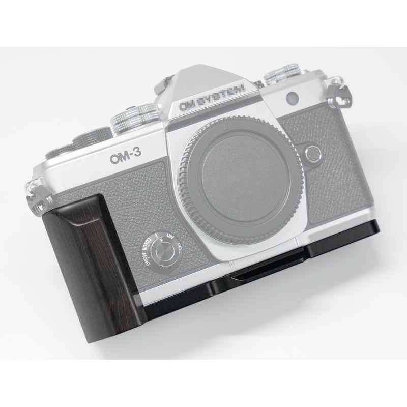 - (Compatible OM SYSTEM OM-3 Camera Grip Only) Our experienced designers have designed the handle of real wood for quick release plate. The handle is ergonomically designed to improve grip and feel for increased comfort and stability when shooting handheld