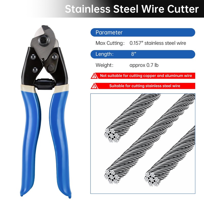 - Crimping range 12 AWG-2/0 AWG, Steel Wire Cutter Cuts up to 5/32" stainless steel cable.