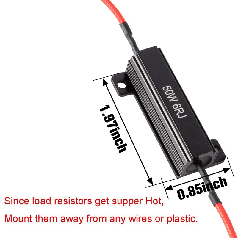 • NOTICE! Load Resistors heat up like light bulbs and get super HOT when working. Make sure you mount them away from any wires or plastic.