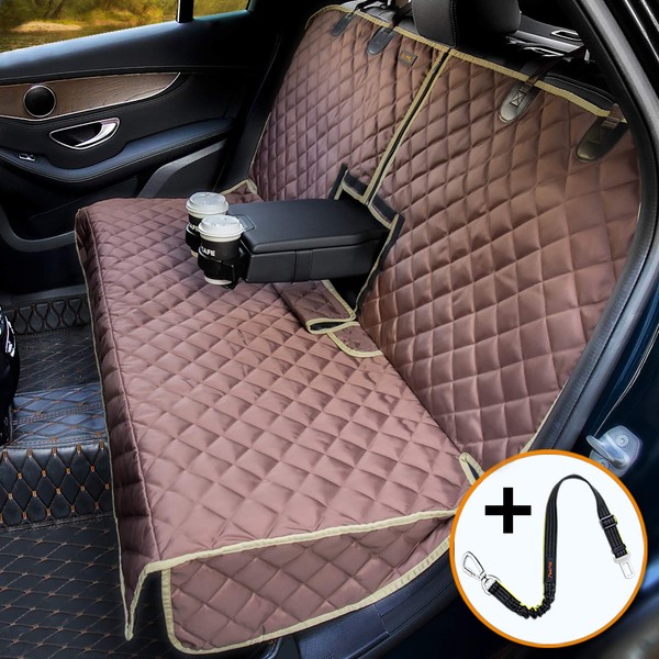 - COMPATIBLE MIDDLE ARMREST&SEAT BELT-Dog car seat cover could use the armrest and cup holder to provide a cozy driving environment. Included openings to insert dog seat belt keep your dog safer and prevent jumping to the front seat while the car is moving.