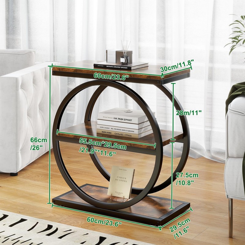 - 【DOUBLE CIRCLE DESIGN APPEARANCE】This narrow end table blends a rustic brown tabletop with a matte black metal frame that complements any decor. The double circle border design makes an otherwise plain end table stand out, not only adding visual depth, but also making it a striking focal point in any room that is sure to impress your guests.