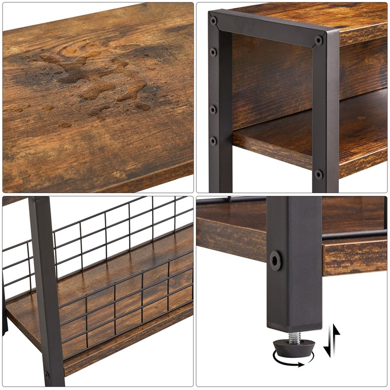 - 【Sturdy Structure & Fine Metal Mesh Layer】The 3 tier coffee table is made of MDF board and Rust-proof square tube frame; The Mesh Layer design allows you to see the magazines and books placed at a glance, and quickly find what you want.Anti-rust black finish strong metal frame make this end table a nice piece of furniture for your home.