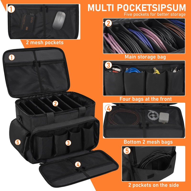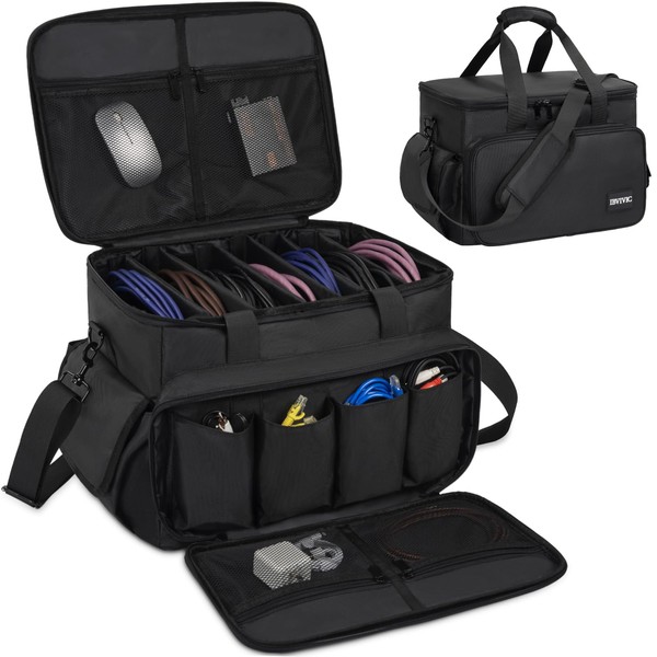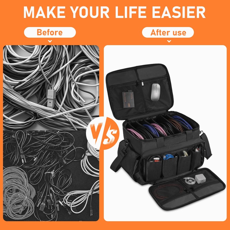 - 【2 Carrying Ways for Travel】Our portable cable bag Comes with reinforced handles and adjustable shoulder strap. You can switch 2 kinds of carrying methods at any time.A great DJ Cable File organizer bag for business trip and daily use