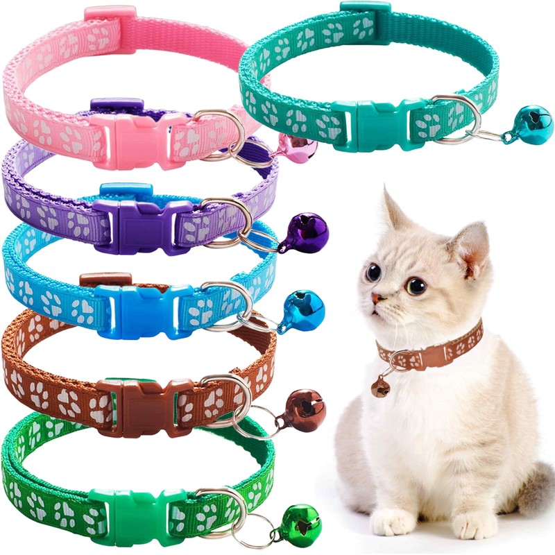 IBXWMNG Pack of 6 Cat Collars with Safety Clasp, Bell and Reflective Material, Adjustable Collar for Cats