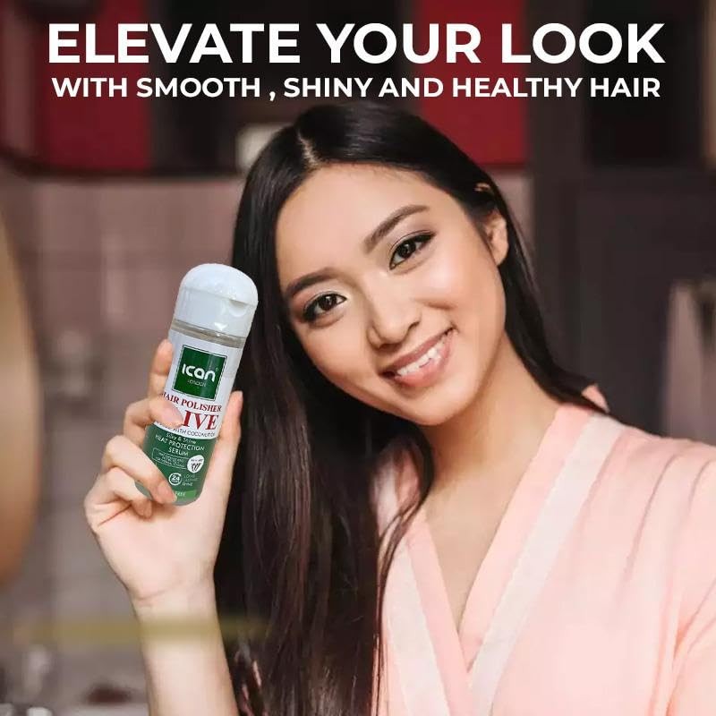 ican London Hair Polisher Olive Oil Infused With Coconut Oil Heat protection Serum Alcohol Free 207ml