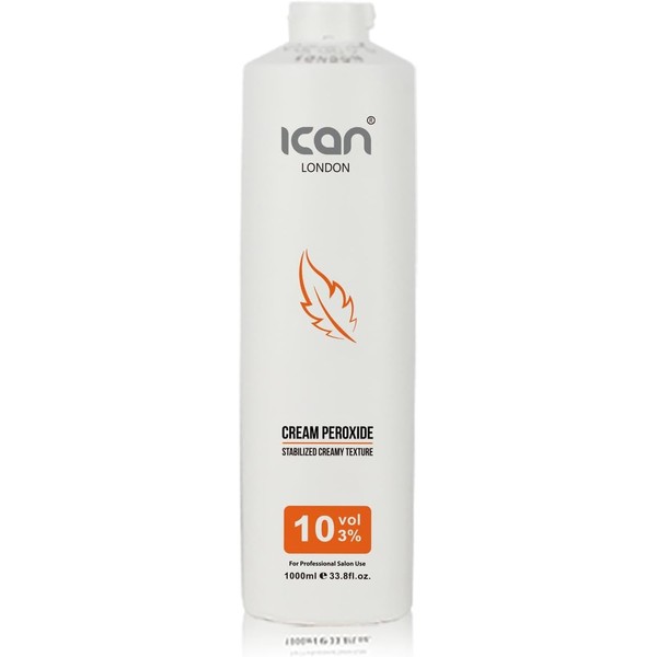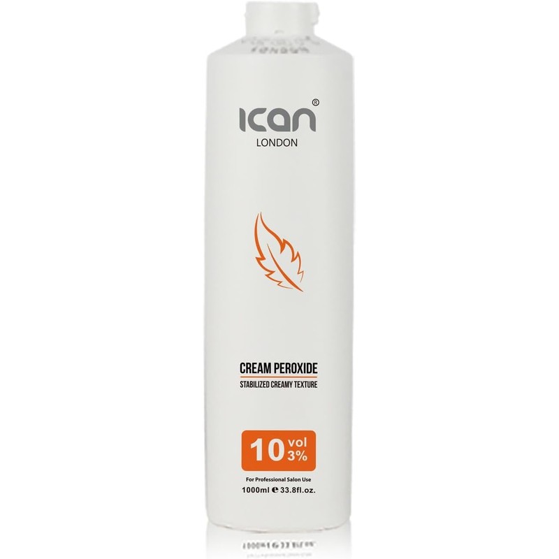 ICAN LONDON CREAM PEROXIDE 10 VOLUME 3% 1000 ML STABILIZED CREAMY TEXTURE. THIS PEROXIDE CREAM IS RICH OF NATURAL INGREDIENTS, WHICH CONFER THE PRODUCT A HIGH PROTECTIVE POWER AND MAKE IT GENTLE TO NATURAL HAIR STRUCTURE.