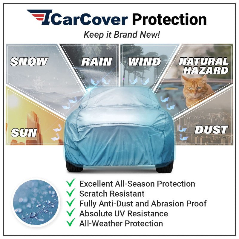 ☑ Waterproof and Windproof Car Cover stops dust from getting in Car & Mechanical parts.