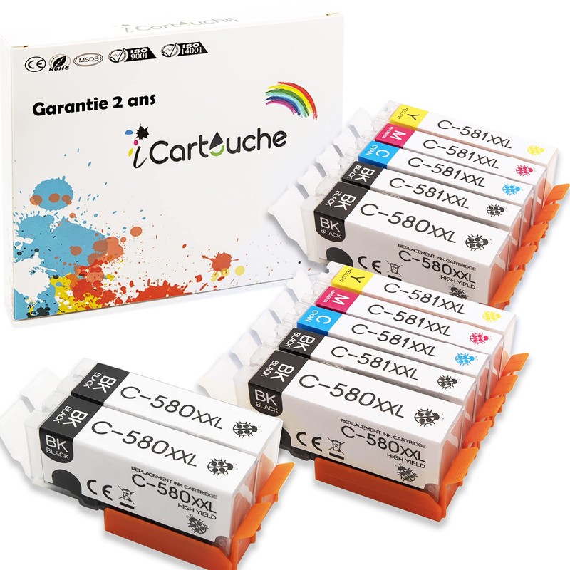 icartouche Ink Cartridges Compatible with Canon PGI-580 XXL CLI-581 XXL Pixma TR7550 TR8550 TS6150 TS6250 TS6350 TS8150 TS8240 TS8250 TS8350 TS9150 TS9550 TS6151 TTS6251 TS6351 (4BK 2C 2M 2Y 2PBK)
