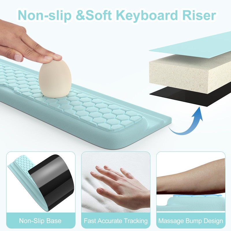 iCasso Ergonomic Keyboard Stand and Wrist Rest Pad,Memory Foam with Wrist Support for Computer Laptop,Non-Slip Arm Rest Wrist Guard with Acrylic Tilted Holder for Home,Office,Gaming(Blue)